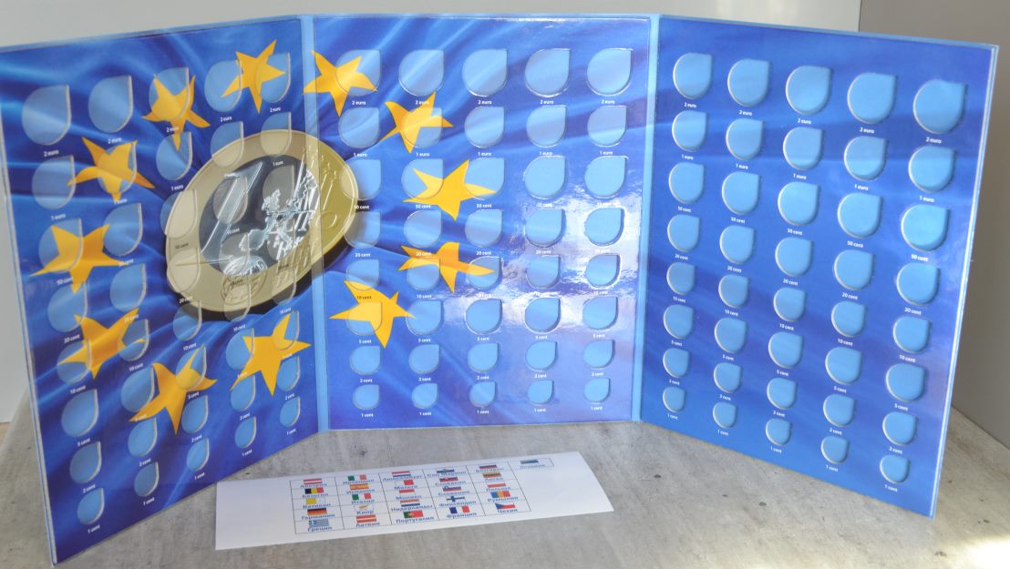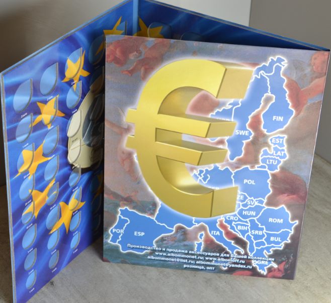 Альбом-планшет для хранения курсовых монет евро. В альбоме помещается 120 монет ( 15 наборов по 8 монет, от 1 евроцента до 2 евро). Одна страна -один вертикальный ряд. альбом укомплектован наклейками с изображением флагов и названием стран. Наклейку можно разместить сверху любого верт. ряда. Цена - нет Сообщение отредактировано mebius: Jul 17 2022, 00:08 Вложенные эскизы изображений |