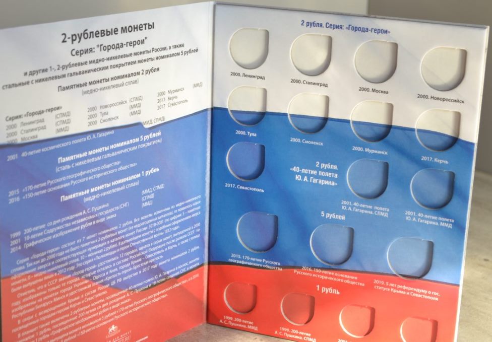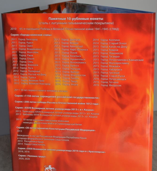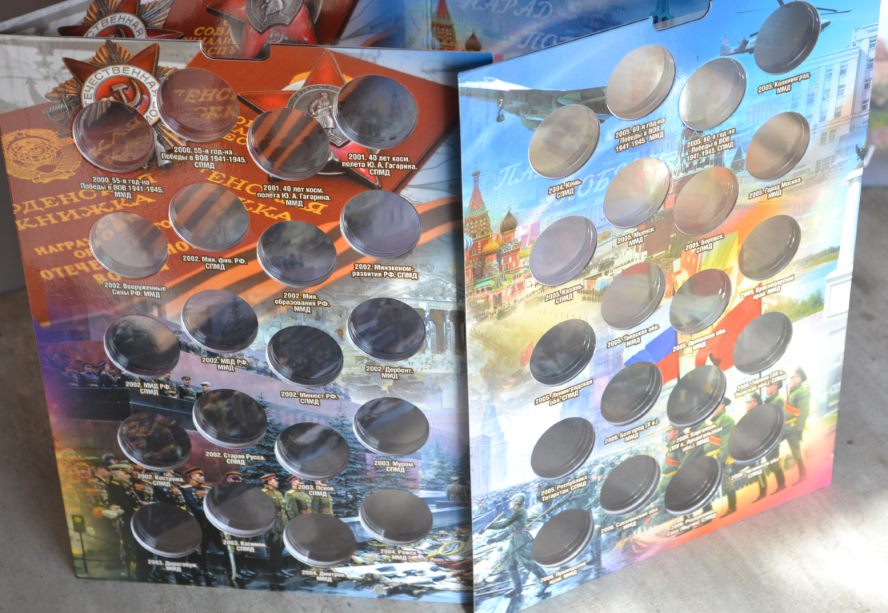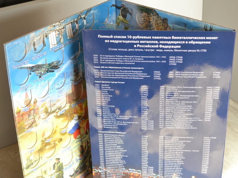 1. Блистерный альбом предназначенный для хранения 10-рублёвых стальных, с гальваническим покрытием монет, ГВС (на 70 ячеек) В данные монеты входит: СЕРИЯ «ГОРОДА ВОИНСКОЙ СЛАВЫ» — 45 монет, "Вхождение Крыма и города федерального значения СЕВАСТОПОЛЬ в состав РФ", "ХХVII Всемирная летняя универсиада 2013 г. в Казани" (2013 г.), "70-лет победе в Сталинградской битве", "XXIX Всемирная зимняя универсиада 2019 г. в Красноярске", "Человек труда 2020" и другие. Цена - 260 руб. 2. Альбом -планшет для 5 руб. монет Серии "Города-столицы Государств" Цена - 170 руб. Сообщение отредактировано mebius: Jul 17 2022, 00:14 Вложенные эскизы изображений |