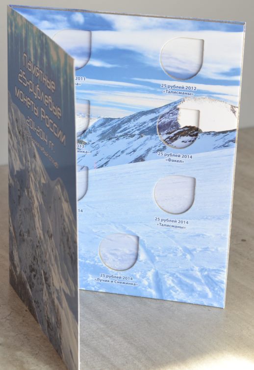 Альбом планшет для монет СОЧИ , предназначен для хранения ТОЛЬКО СЕМИ 25-ти рублевых медно-никелевых монет России посвященных О.И. 2014 года в Сочи (с годом чеканки 2011, 2012, 2013 и 2014).