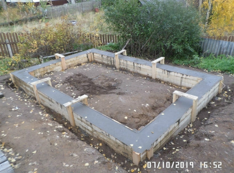 ![]() В мае закрутил 8 винтовых свай, по две на каждый угол. И на эти две сваи клал брус 150*150. Таким образом угол бани держался на этих двух сваях, на которых лежал брус. Теперь можно было спокойно заниматься под баней. Не трогал только центральный столб, так как он стоял под печкой с камнями. Решил не рисковать. Но перед этим пришлось разобрать крыльцо, а доски с пола пришлось пустить на опалубку фундамента. На этом было закончено весной. Копать под баней начал в августе. Выкопал на нужную глубину всего за пару дней. ![]() ![]() Заказал заранее 6 кубов песка и 14 мешков цемента. Долго сидел в интернете и рассчитывал сколько сколько получится бетона из одного мешка цемента. В мыслях было использовать 4 куба песка на подушку под фундамент, а 2 куба использовать с цементом. По высоте думал сделать бетона 30-35 см. При этом половина объёма будет заполнена битым кирпичом,шифером и стеклом, а вторая половина цемент с песком. Но видимо не совсем правильно сделал расчёты. 14 мешков цемента ушли довольно быстро. Родственники отдали мне ещё 3 мешка цемента, но это была капля в море. На этом было принято остановить заливку и оставить всё до второй половины отпуска в октябре. ![]() ![]() В октябре сразу закупил 100 мешков пескобетона. С песком и бетоном решил не связываться, так они привозились из разных мест. А каждая доставка стоила 2500. хранилище фотоЗалив все 100 мешков, я понял что опять не хватает. Примерно не хватило мешков 20-25. Надеялся, что осенью залью фундамент, а весной уже выставлю столбы. Пришлось отложить до весны, так как денег уже практически не осталось. Этой весной заказал 25 мешков пескобетона и кирпичи под столбы. Быстро залил нужное количество пескобетона и оставил это всё на 10 дней. После под каждую сторону бани установил по 4 столба. И под баней соответственно тоже были столбы. ![]() Не все моменты строительства фотографировал, к сожалению. ![]() ![]() ![]() Осталось доделал самую малость. Надо будет выставить по уровню и заново подключить воду к бане. Так как пришлось залить все трубы. Просто в прошлом году не было возможности убрать их в сторону. Но это всё мелочи. Ну а пока баню временно установил на пеньки и убрал брус с углов. За несколько дней наблюдения ничего внештатного с фундаментом не произошло. ![]() За эти два года пришлось потратить чуть более 60 т.р. Всем спасибо за внимание. Сообщение отредактировано СуHDуК: Jun 1 2022, 15:55 -------------------- СуHDуК со сказками!