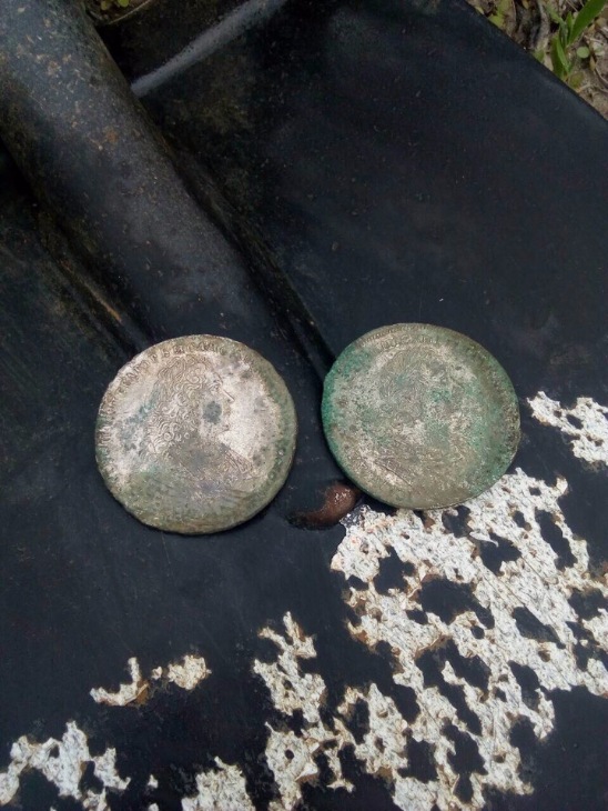 Всем здравствовать! Не много не мало или, уж послал так послал! Рассказывать тут особенно нечего. Всё вышло довольно просто, прозаично и совсем незамысловато, как, пожалуй, и должно быть, в подобных случаях. И, если рассказывать коротко, в двух словах, то, в основу сюжета ляжет намеченная на эти выходные поездка за город и, собственно,само обнаружение клада, промеж которых помещается всё, что обычно сопутствует сборам в дорогу, поездке, поиску новых мест и, самому копу… В данной истории я постараюсь быть краток ещё и потому, что всё это пишется с ходу и, по горячим следам! Только вчера ночью вернулся с поездки и набираю всё это, едва ли не в прямом эфире! За ошибки не пинайте. Потихоньку- не сегодня так завтра , сами исправятся! И, действительно, что тут рассказывать. Собрались мы на коп в эти выходные. Маршрут наметили загодя и основательно подготовились. Заранее закупили продукты, заправились и, тут вдруг выясняется, что один из членов экипажа ехать не может. Припахали его родственнички, аккурат на эти выходные на дачу и никак от этого не отмахнуться. Что делать? Он, недолго думая, предлагает нам выехать в пятницу и, только лишь, на один день. Мы, естественно, не согласились с таким подходом. Какой смысл кататься нам на день, когда и за пару то дней, в нелёгкое наше время, можно вернуться домой пустыми и без монет? Одним словом, уехал Мишаня на день и, в пятницу, да ко всему, совсем в одного. День прошёл, вечер кончается, а он за всё это время, так ни разу не позвонил. Наверно обиделся, что одного бросили и, не составили ему компанию. Часам к 11 набираем его номер. Он трубку берёт и заявляет, дескать, два часа уже дома и, съездил, про между прочим , очень даже удачно. Привёз, под сотню разных монет и, половина , из них, сибирские! И не понять нам, как то, по телефону, правду он говорит или шутит таким вот образом. И в голосе его слышна, еле приметная, ехидная нотка. Как будто бы хочет сказать, всем нам:- Я же Вас звал. Ну, вот, локти теперь кусайте. Спросили его, куда он так удачно забрался и, услышав ответ, изрядно тому удивились. Были мы в тех местах в прошлом году осенью и, кроме полушки Елизаветы Петровны, единственной, на четверых, ничего там не нашли ….. Может плохо ходили? Да, похоже, что это так! Ладно, выехали мы в эту субботу. Приезжаем на заданное место, где Мишаня, должно быть, сибирские монеты нашёл…. Осмотрелись, всё точно. Вот следы Мишиного автомобиля. А здесь он стоял. А вот его свежие, довольно редкие ямки. Неужели, действительно, здесь, монета была? Не может этого быть! Неспешно переодеваемся, пьём чай и в путь, на поиски сибирских тяжеловесов. Через пятнадцать минут встречаемся у небольшого оврага. Обломки меди, один перстенёк, гильза и пара имперских монет. И, ничего. А главное, ни одной сибирской монеты. Вот так номер! Может не здесь монеты Миша нашёл, может быть там, за кустами, где притулилась среди болота ещё одна дальняя поляна? Похоже, что так и есть! До неё пешком, среди кочек и луж, не менее полтора километра. В воздухе знойное марево. На небе ни одного облачка . Полнейший штиль. Жара за тридцать и злые болотные пауты. Идти не хочется, а совсем даже наоборот. Хочется прилечь и спрятаться в глубокую тень. Но, нашёл же он в этих краях сибирские десятки. Или он пошутил ? Ну, если всё так, ответим тем же и, по рабочему. Пошлём его, при удобном случае, на Бадан завод или