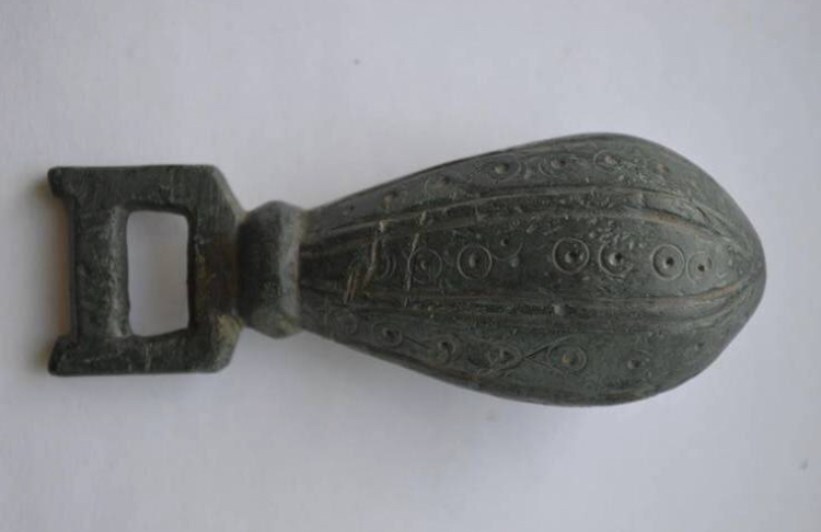 Это запад МО. Верхняя часть у нас очень типична. С таким верхом один в один у нас попадаются на поселениях с 14 по 16 в, но низ другой. Здесь отличие только в нижней части, которая более длинная и этот сам по себе без сопутки, в русле пересохшей реки, которая теперь как болото. Если же в наших краях попадается кистень с вертлужным подвижным верхом, то мы относим такой на смуту.