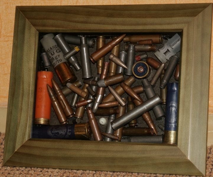 Вот так оформлял свои гильзы и патроны... Правда не копанина, но вроде так лучше, чем россыпью в коробке лежать...
