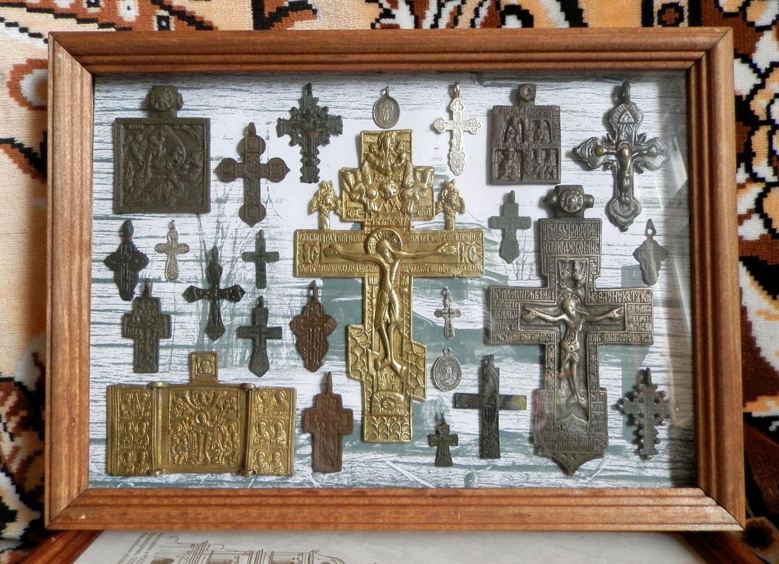 QUOTE(Оренбург @ Jan 23 2018, 12:20) Отлично получилось! Фон шикарный. Как по мне,так ничего добавлять не надо. Чувствуется музейный порядок! QUOTE(AV.Sots @ Jan 23 2018, 13:36) Довольно не плохо смотрится. По крайней мере, наверное это одно из лучших оформлений, что тут показывается. Повторюсь, не самое, но одно из лучших. Остаётся теперь систематизировать рамки и разложить по направлениям и разновидностям коллекционного материала. На мой взгляд, монеты и сюлгама не к месту с иконами. Их нужно отдельно разместить. Опять же, одну сюльгаму не повесишь, нужно, как минимум подборку, что бы заполнить какое то пространство в раме. По монетам то же самое. Удачи! QUOTE(sha-stalker @ Jan 23 2018, 13:42) Хорошо оформлено. Только здесь с Вашим виденьем темы? Спасибо за внимание и отзывы! Повторюсь, что в настоящий момент не стОит обращать внимание на отсутствие тематики в оформлении - её просто нет..)) В ближайшее время будут изготовлены дополнительные витрины, которые займут часть ещё одной стены, после чего буду заниматься тематическим оформлением.. Так же планирую снять видео, в котором бы мог пролить свет на те вопросы, которые могли бы быть здесь озвучены..)) Сообщение отредактировано Lehandro: Jan 23 2018, 13:16 -------------------- Изготовление витрин из багетного профиля для оформления предметов коллекционирования