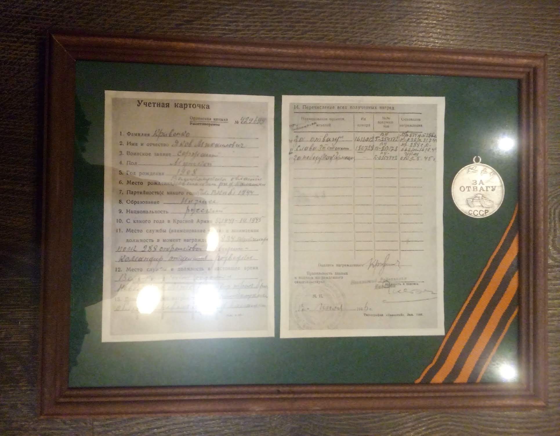 Приветствую! Вот очередная "наградная" рамочка, с найденной медалью. После долгих поисков родственников, нашлись сын и внучка. Рамка с медалью вручена внучке ветерана. Надеюсь, что будет передаваться как семейная реликвия.