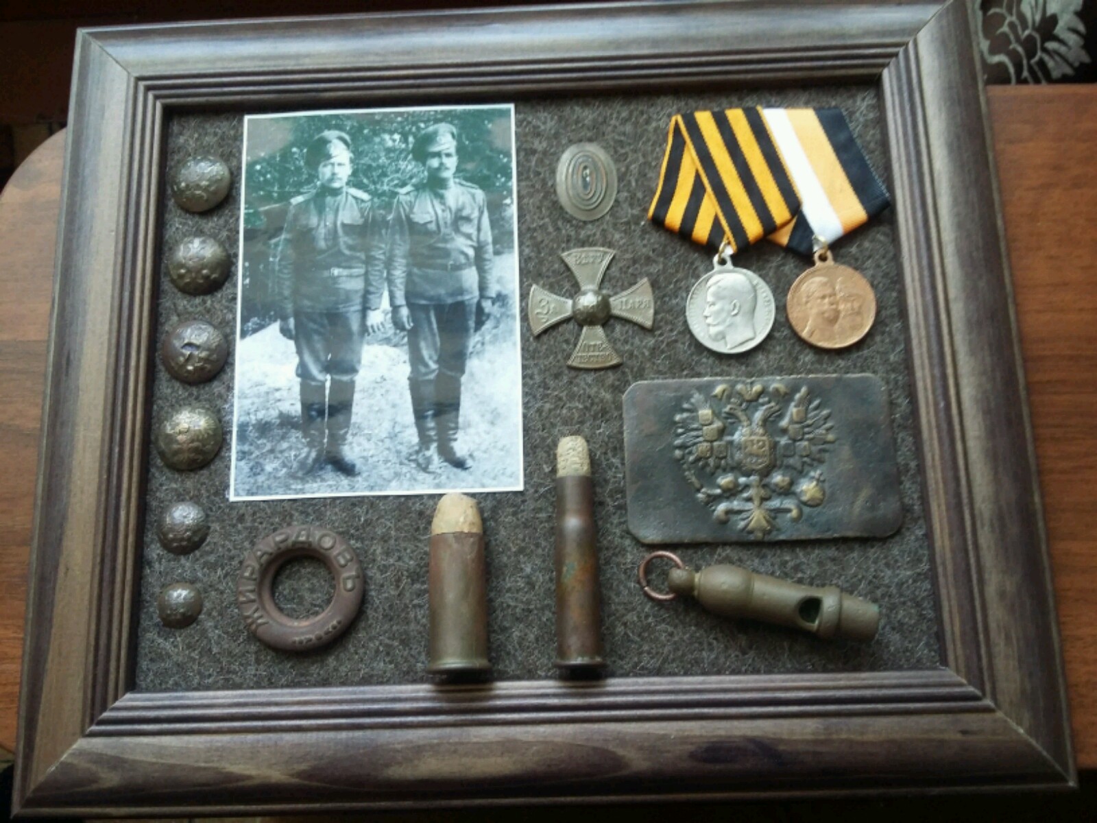 QUOTE(gudvinn @ Mar 5 2021, 17:06) Приветствую форумчане Очередная работа по оформлению моих находок ... на фото с лева мой прадед по материнской линии Интересно, а что это Ваш прадед там в левой руке держит?! Похоже на фляжку, или что то ещё... Теперь остаётся только предполагать. Здорово, когда в семейном архиве сохранились такие фотоматериалы! Может быть только стоило бы фотографию поместить в центр композиции с предметами?! ИМХО, в этой рамке фотография Вашего прадеда это основное! А остальные предметы вполне себе смотрелись бы равномерно по сторонам. В любом случае с меня + за оформление рамки. Сообщение отредактировано ruzed: Mar 5 2021, 19:43 |