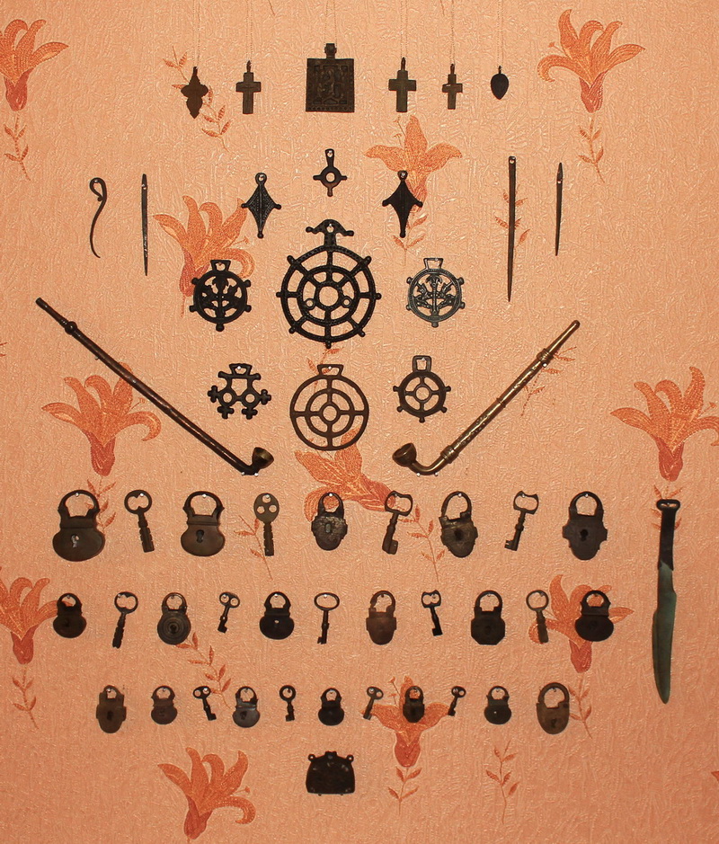 Попытался и я оформлять находки. Только вот никак не могу придумать способ крепления артефактов. Не то на клей,не то нитками..Например рамочка с домонголом..