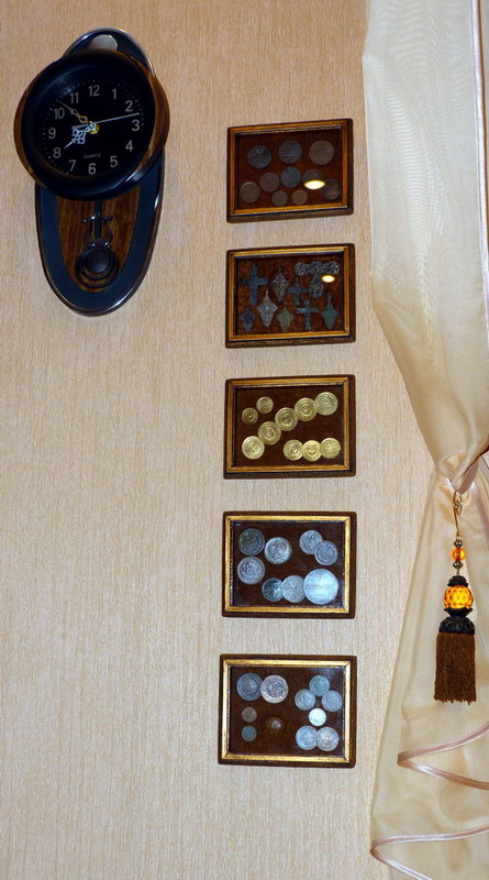 QUOTE(bualev @ Nov 29 2011, 21:55) Выставлю и я свои поделки того года. Рамочки самодельные, естественно Классно смотрится. А на втором фото: такая рамка маленькая или такие монеты большие (не настоящие) ? |