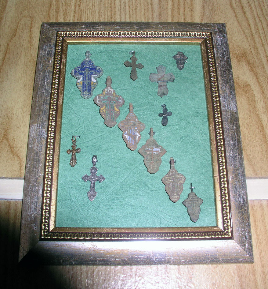 QUOTE(Dovmont @ Feb 3 2012, 13:30) А вот, мои потуги, на этом поприще. С кониной- очень здорово! А вот первая рамка, на мой взгляд, слишком массивная для предметов, расположенных в ней. Туда можно что-то крупное поместить, например, подкову, стремя, ну или большой крест киотный...А в целом- молодца! -------------------- Слава тебе,Господи,что мы казаки!