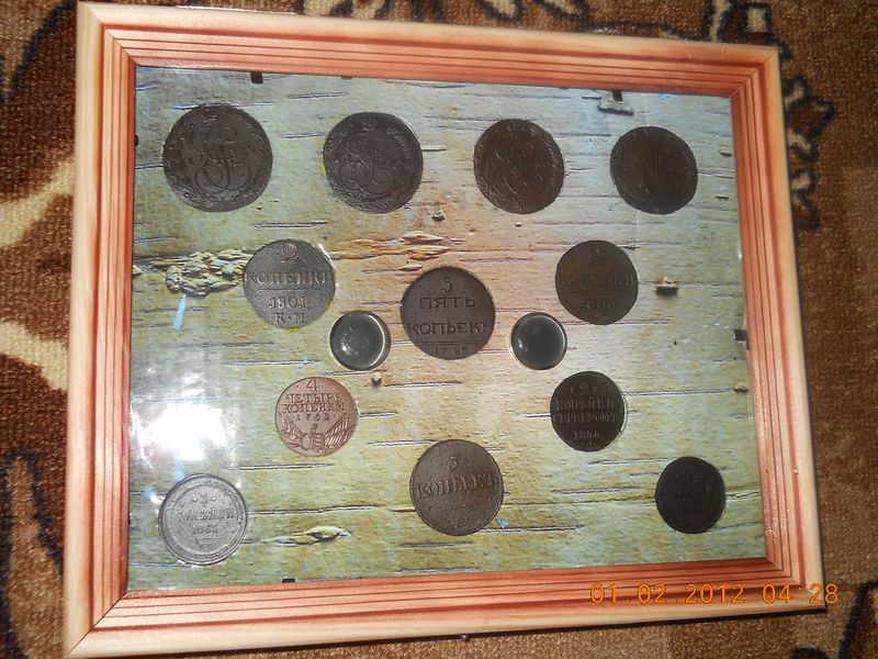 QUOTE(Синий @ Feb 1 2012, 00:54) Доброго всем здоровья! Вот решил оформить монетки в рамочку. Читая тему, много почерпнул для себя, а кое что использовал в своем творении. В живую естественно смотрится красивее, жена даже похвалила, не зря говорит два вечера потратил. Ну это жена, теперь выставляю на ваш суд... P.S. 4 копейки барабаны и 5 копеек 1796г. конечно же ненастоящие. Рамку бы другую.... -------------------- Прежде чем что-нибудь говорить, нужно трижды просеять это...