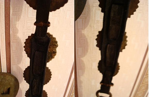 QUOTE(nice.vikt @ Mar 1 2012, 23:54) Пойду подкову переворачивать. Спасибо за совет. Смотря чего Вы от неё ожидаете. Если "наполнения" (типа, чтобы пришло богатство, доход, прибыль) - то вверх ногами. А если "защита" - то наоборот - вниз Есть два мнения по этому поводу. Одни считают, что подвешивать подкову нужно концами вниз, но обязательно перед входной дверью, чтобы вся нечисть задерживалась у порога и "стекала" по рожкам подковы вниз. Если же подкова находится внутри дома, то подвешивается она ножками вверх, символизируя "полную чашу" дома. Есть мнение, что подкова своими "ножками" впитывает энергию космоса и аккумулирует ее в доме, но только в том случае, если ножки направлены вверх. Если повесить подкову внутри дома вверх дужкой, то вся накопленная энергия, вместе с удачей и здоровьем, будут уходить в землю. В общем, каждому как нравится)) .................................. ..На дворе март. Копоболезнь окончательно вошла в свою высшую стадию. И измученное больное воображение при помощи рук выдало ещё одно "произведение" из сопутно-конинного материала для дачного интерьера.. Сталь, кожа, латунь. Длина 850мм, вес 1,1кг Зачищать до блеска не стал, пусть в родной патине будет. Лишь подкову покрыл бесцветным лаком по металлу. Вложенные эскизы изображений -------------------- ♃