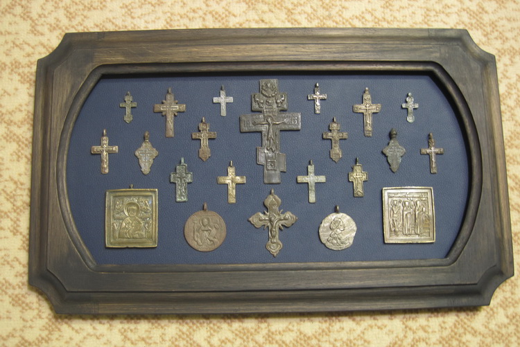 Для серебра подойдёт чёрный фон(можно матовый).Рамку или красивый самодел,или багет,но не сильно широкий.Много мелких предметов и крепить попробовать леской.Пробуйте.С ув. |