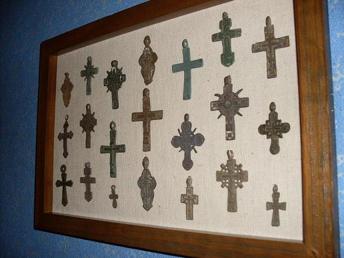 Рамочки в вас определенно очень симпатичные ! По ПМВ очень глянулась , но пыть все-равно проблема - как не убирай , находки становятся блексее , в узких щелях она забивается. Для копеешной и не старой ерунды нормально , но если что-то дорогое оформлять будете , или археологию , например , обязательно стекла ставьте , Это сбережет чувствительные находки от колебания влажности .
