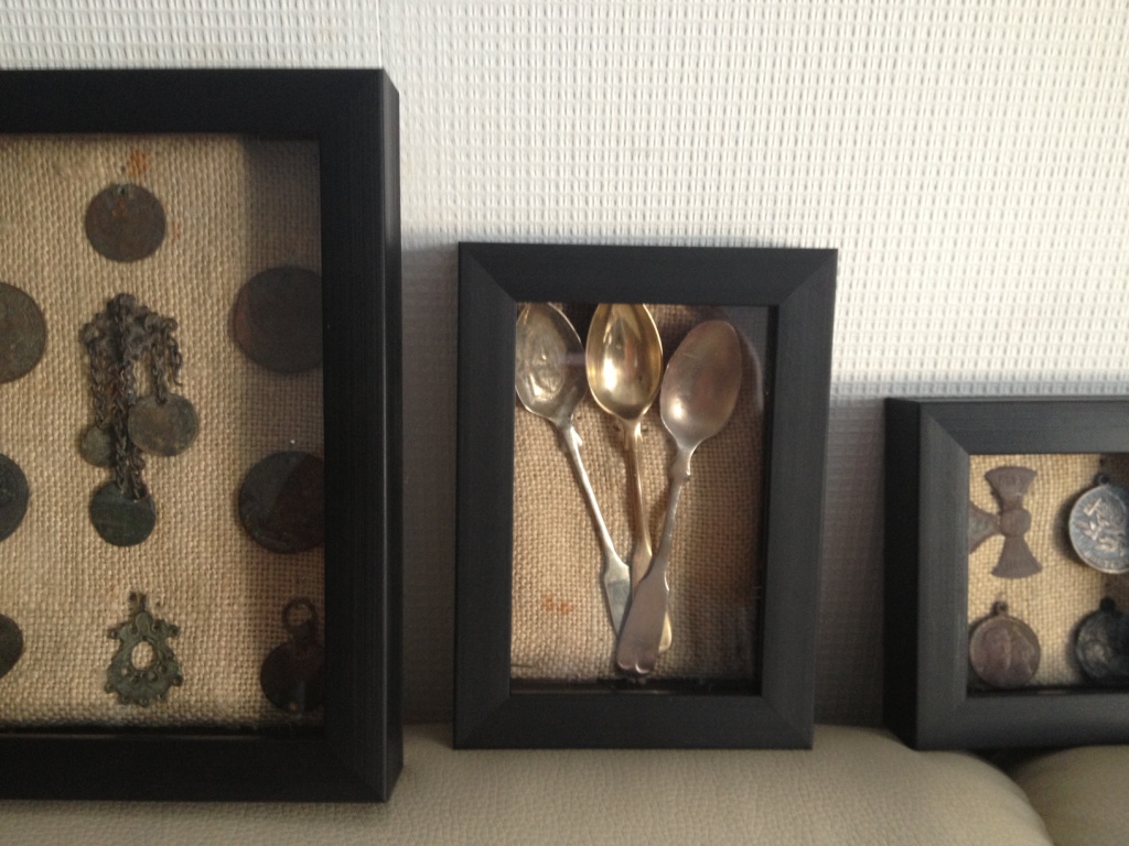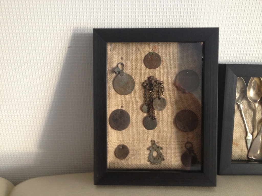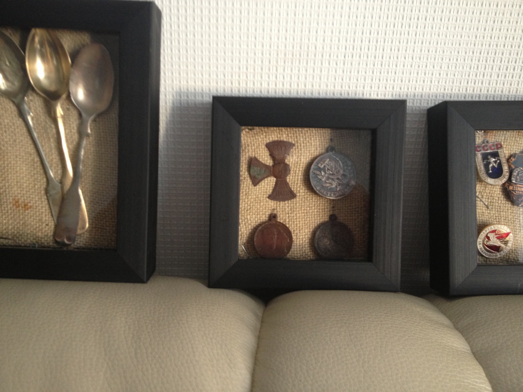 Выглядит как куча разнородных предметов ... Рамки полупустые. Клеили ткань чем ?