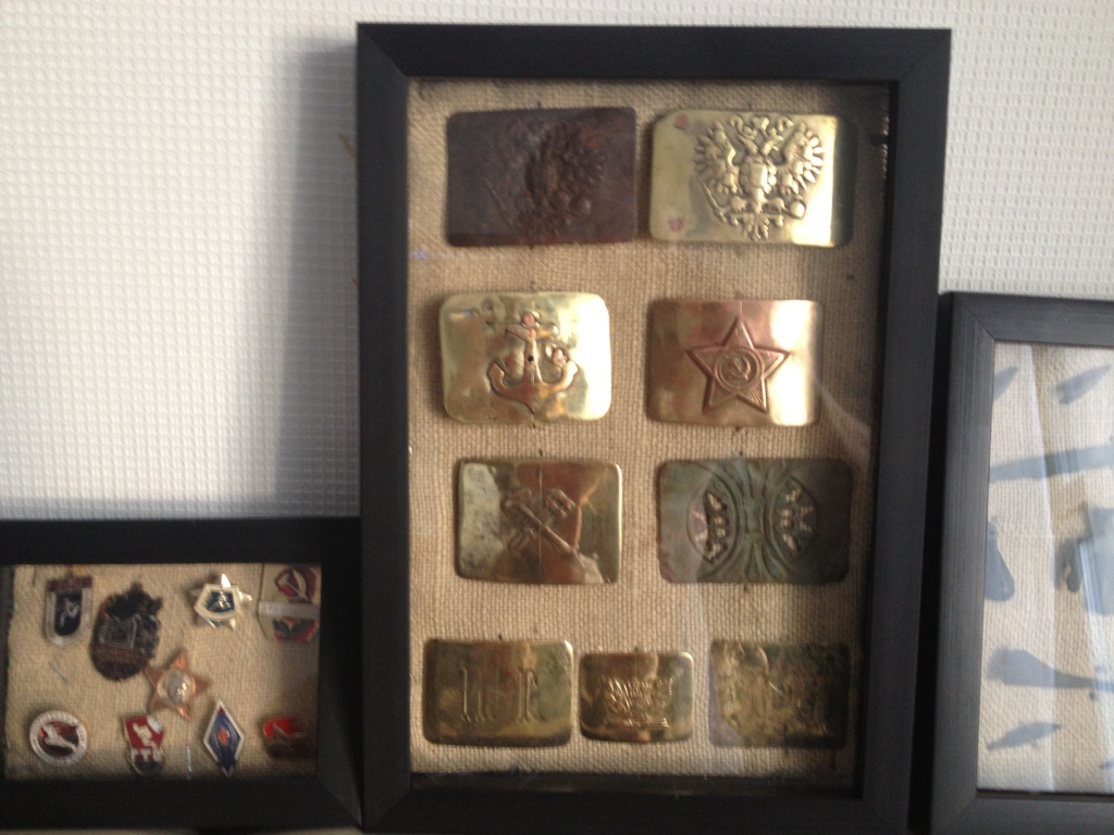 QUOTE(хуторянин @ Dec 27 2012, 12:14) ______________________________ Подложку беру кожзам,выбор остановил на трёх расцветках:хаки,синий и светлый беж..но матовый,без блеска,на мой взгляд-оптимальный вариант для любых находок.Клею на ДВП клеем ПВА для дерева.Ну а крепление самих девайсов по-разному,в основном леской(тёмного цвета).Рамку по ПМВ-термопистолетом и леской.Если предметы большие,то пользую автомобильный двухсторонний скотч.Как-то так.С ув. П.С. Всё это(по поводу крепежа) для не дорогих предметов. В рамке с иконками , пока не крепили , рекомендую уменьшить плотность раскладки. Если будут хорошие предметы , рекомендую отказаться от химии . Кожзам на льняную ткань поменять , Двп на фанеру. Для предметов в толстой патине леска не подходит , т.к. может выкрашивать ушки и края. Лучше льняная нить. Скотч также недопустим - с патиной отлипнет. Но для 18-20вв у вас отличное решение , а рамки сами вообще класс ! |