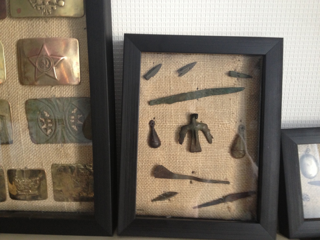 Всё бы хорошо.Но. Находки распределить по временному промежутку.А то домонгол как то с 19-20 веком не так хорошо смотрятся. И для фона канву варёную взять а не отбеленную. Было бы лучше.