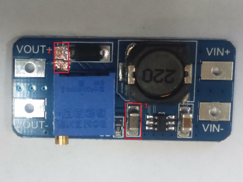 QUOTE(Smirnov.S @ Mar 14 2017, 16:44) Спасибо за ответ можно попробовать. я на фишер поставил 2 аккомулятора 18650 и китайский DC/DC MT3608 выставил питание 9 вольт нормально работает. Я на многие свои поделки ставлю эти модули. Очень удобные. Могу поделиться небольшой доработкой этих плат, возможно кому пригодится. Дело в том что плата разведена немного неправильно и в результате при нагрузке идут довольно большие помехи. Они образуются из-за длинного проводника идущего к емкости 20 мкф №1. Обычно предлагается увеличивать емкость на выходе и ставить доп. дроссель. По моему проще сделать небольшую переделку чтобы избавиться от основной причины шумов. Суть переделки простая необходимо выпаять емкость № 1 и припаять ее на площадку №2. В результате помехи уменьшаются в 10 раз. Сообщение отредактировано GSL: Mar 14 2017, 20:52 Вложенные эскизы изображений |