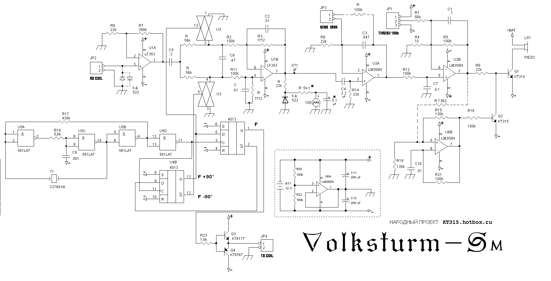 QUOTE(sss @ Apr 14 2009, 01:00) Зачем мне вас критиковать? Поправляю ваши "не точности". Надоело, конечно... но продолжим тему про "велосипед" Volksturm Sm Улучшенный вариант Volksturm S, пока менее отработан, но обладает лучшими характеристиками. (примечание автора прибора....) Такое схемотехническое решение, мне к сожалению не понятно.... В остальных схемах КТ315,КТ316, КТ3102,КТ3107 ~100мВТ КВАРЦЕВЫЙ ГЕНЕРАТОР - такое магическое словосочетание. Но увы, на данном этапе развития техники - банальность! Видимо у американцев часовые кварцы 32768Гц -страшный дефицит нужно отправить посылку дядюшке Чарли(Гаррету), дабы поставил в АСЕ450 А фантомов там, не будет если правильно регулировать! Два подстроечника чувство и порог. Порог ответственный за начальный уровень чувствительности и фантомы. Настраивать его придется переодически т.к. напряжение питания не стабилизировано и не предусмотрен балланс грунта - или загрублять, дабы не беспокоил.... Я просто привел пример по Volksturm S.Не стоит утрировать по поводу 25 ватт . При всем желании КТ817Г при питании 12 вольт такую мощность не сделают. Мне понравилась ваша фраза по этому прибору. Такое схемотехническое решение, мне к сожалению не понятно.... Про кварцевй генератор. Дядюшка Чарли(Гаррет) создавал ширпотребовскую вещь , да и зачем . что то лепить серьезное в конструкцию за 200 баксов . По вашему все каврцевые генераторы давно в помойку , не советаю ...много техники встанет. На конец то я услышал и дельное от ВАС.Два подстроечника чувство и порог. Если внимательно почитаете тему , я уже задевал эти вопросы. На последок .Схему не обсасывают и детально изучают. Понимаю . что вам это не дано , так как вы пока приводите ссылки ,а не разбор узлов по схемотехнике . |