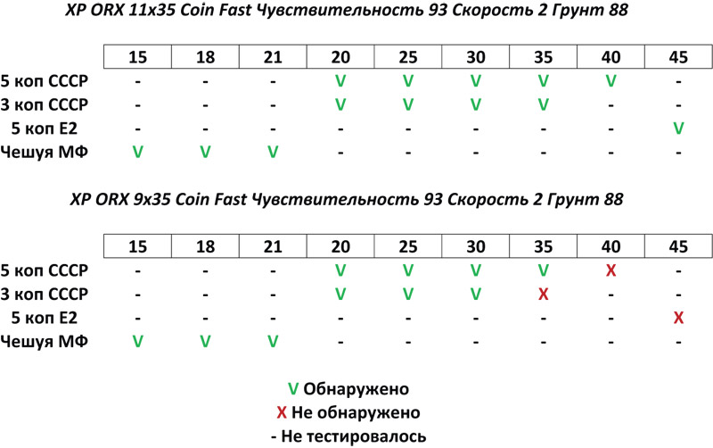 Тест катушки 9х35 Сводная таблица замеров результатов тестов по глубине 9 и 11 катушек х35: ПС. На горизонтальной шкале глубина указана в сантиметрах. Данные тесты на абсолютную истину не претендуют, замечу замеры производились в легком лесном грунте (песок). Катушка 9 дюймов взяла 80% целей, остальные 20% спорный сигнал, который отнесли к сигналу, который можно не взять с прохода. Сообщение отредактировано superlos: Apr 25 2019, 21:48 -------------------- ...