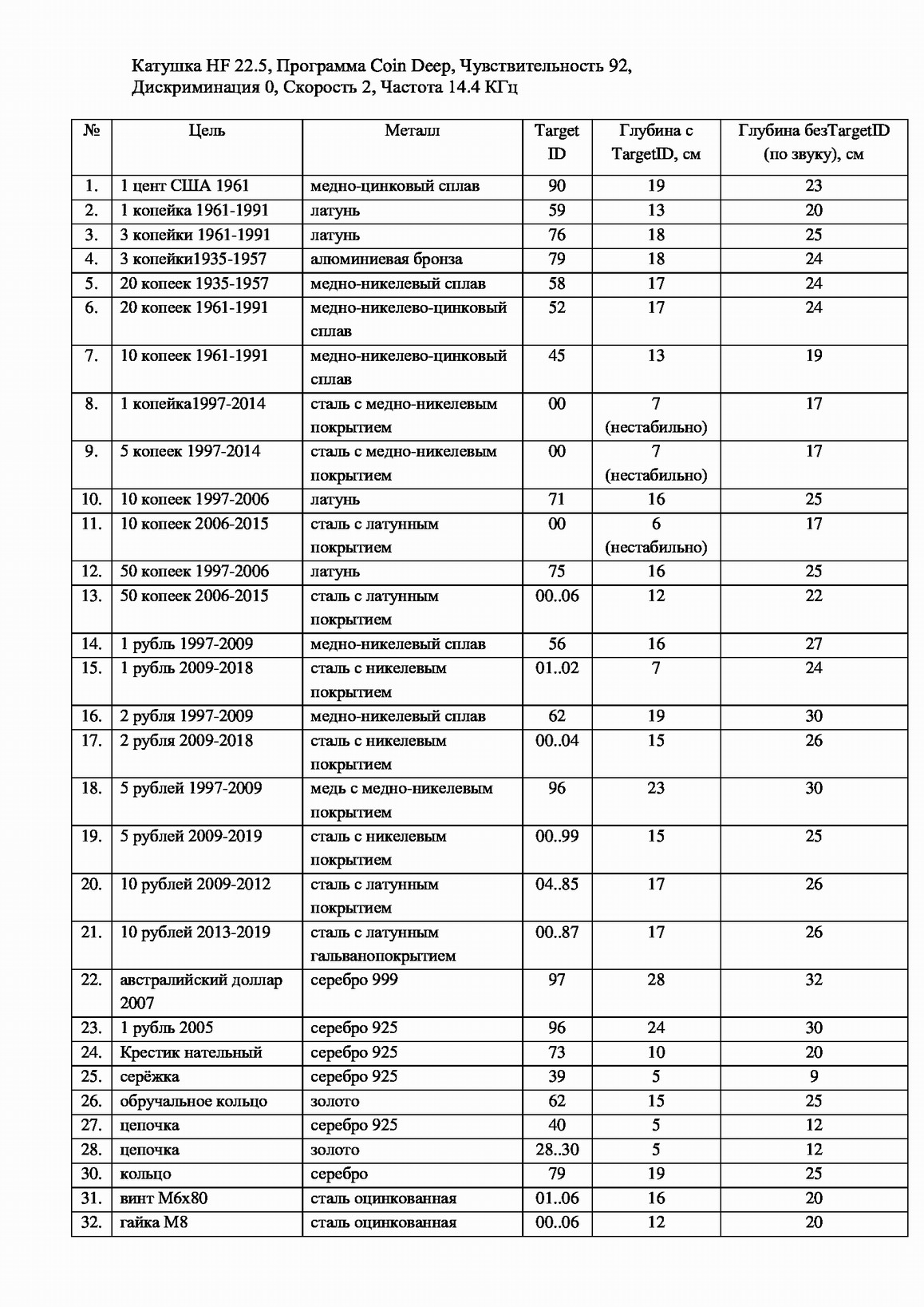 QUOTE(Петя и волк @ Jun 30 2019, 22:43) Спецы просветите, как увеличить глубину поиска мелких цветных целей? Хожу с х35 28 см на 17-25 гц. скорость 1. чуйка 85-90. баланс по умолчанию прог. Gold#1 самая глубокая у ORX, у неё меньше всего фильтров фильтр МЖ на 5 трешхолд ≈ 12 и вперёд на частотах от 11 КГц. На 4 КГц это тот же Boost режим но он для глубокого крупняка. |