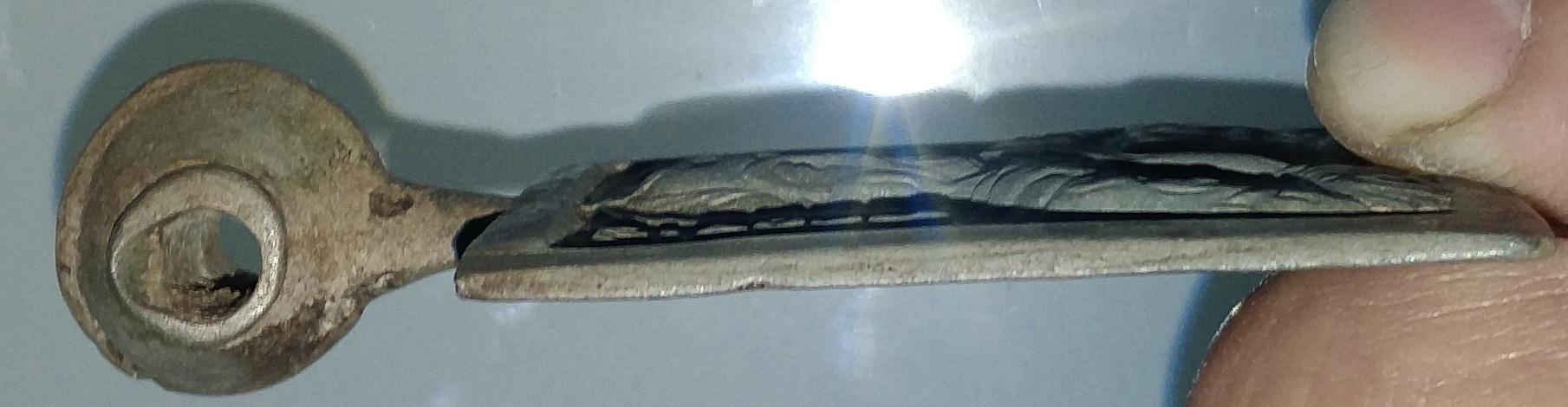 Интересно, из чего была пронизка, верхняя часть ушка так изношена.