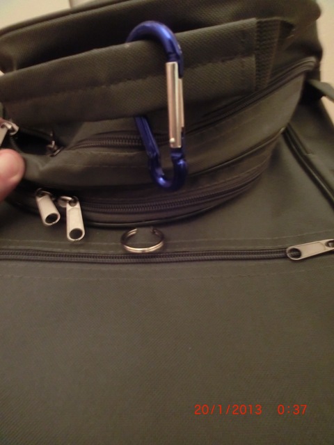 По закону подлости-старый ремень,вероятно почуяв,что его будут резать-сгинул в дебрях гардероба. Решил делать все из подручных материалов.Использовал:карабин алюминиевый,купленный в каком-то хозяйственном магазине рублей за 10 и кольцо от ключей.Колечко продеваем в проделанные два отверстия -на спине рюкзака на уровне нижней молнии.А карабин просто цепляем к верхней ручке.Попробую фото выложить,что-бы было понятно. Да,что-бы предотвратить вырывание кольца из рюкзака-лучше изнутри сделать усиление,типа металлической широкой пластинки. Как-то так... Вложенные эскизы изображений -------------------- Иногда бывают проблемки со входом.Если не отвечаю-продублируйте плиз на мыло devlaq@mail.ru