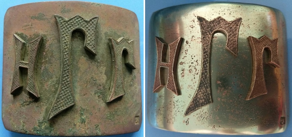 Пряжка из мельхиора, толстый лист. Нижегородская мужская губернская гимназия. Клеймо на лицевой стороне молоточки. На одной из букв не хватает одного усика (усик в наличии) с обратки не хватает зацепа. Будит ли интерес на аукционе с 3.000 тысяч? Вложенные эскизы изображений |