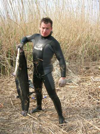 Познание порой нисходит на нас подобно ливню, который обрушивается на окрест- ности, - после их уже не узнать. Эмиль Гетт, нем писатель, 1864 – 1908 В его голове ещё были свежи прошлогодние воспоминания. Тогда он взял 10 трофейных рыб: 5 щук и 5 сазанов. Особенно ему запомнился ерик Арбузный. Стоя на мосту вся их компания восхищенно рассматривала крупных рыб, вальготно проплывающих приличными стаями. В прозрачной воде, пронизываемой лучами светила, тёмно-зелёные спины сазанов казались чем-то не реальным, завораживающе-сказочным. Видимо, человек может бесконечно наслаждаться не только пламенем костра и журчащим ручьём… Он видел эту красоту из-под воды. Антон, так зовут героя рассказа, тихо лежал в засаде в камышовых зарослях. Мимо него проносились рыбы разных видов и разных размеров, но он долго ждал и делал в день всего пару выстрелов. В лагере не переставали удивляться крупным сазанам и щукам. Щуки от 5 кг и выше, сазаны от 10 кг и выше. В ту поездку он был единственным охотником из всей компании. Этой весной Антон решил съагетировать дружную подводную братву и организовать экспедицию в Дельту Волги. Долго уговаривать товарищей по оружию не пришлось, все они смотрели недавно появившийся на дисках шедевр «Большое подводное приключение», ещё несколько раз изучили фильм «Великая Ра» и просто горели желанием попасть на Астраханские просторы. Вечером 28 апреля 2006 года экспедиция состоящая из 9 человек выехала из Воронежа в Астрахань, впереди их ожидало недельное приключение. Антон и Диман уже в 15:00 домчали до места назначения. Газель с остальными участниками приехала несколькими часами позже. Уровень воды в Дельте оказался ниже обычного для этих чисел на 1,5-2 метра. Антон уже в пятый раз приезжает сюда за сазанами в последних числах апреля, и такого «безобразия» ему ещё не доводилось видеть. Катастрофическая нехватка воды объяснялась очень просто. Зима 2006 года побила все рекорды по выпавшим осадкам. Снега было столько много, что пришлось делать внеплановый сброс воды с плотин, расположенных от Саратова до Астрахани. В противном случае гидротехническим сооружениям грозило частичное или полное разрушение. И поэтому весенний сброс откладывался на некоторое время, соответственно и вся основная рыба заходящая с Каспия задерживалась до наступления полноводия. Туристы немного расстроенные, начали обустраивать лагерь, не возвращаться же назад, хорошо, что додумались взять с собою рыболовные снасти. И до темна наловили необходимое для ухи количество рыбёшек, в основном лини, окуни и плотвицы с краснопёрками. До поздна сидели у костра, отмечали долгожданную встречу с Дельтой, наслаждались свежеприготовленной ухой; спать по палаткам отправились глубоко за полночь. Наступило утро. Андрей и Митяй твёрдо решили начать охотиться. Антон решил подождать денёк и побаловаться с удочкой. Влад и Диман начали знакомиться с местным населением и вскоре у нас появился Юрий Николаевич, который в знак уважения принёс 6 белых амурчиков. Завязалось знакомство и вскоре весь лагерь уже стоял на ушах. Тем временем, два закадычных друга погружались в первый раз в дельту Волги. Долго они об этом мечтали, и сейчас волнение охватило их. Как всегда, договорились кто куда поплывёт, и пожелав удачи скрылись под водой. Митяй почти сразу нашёл черепаху и решил прихватить её с 