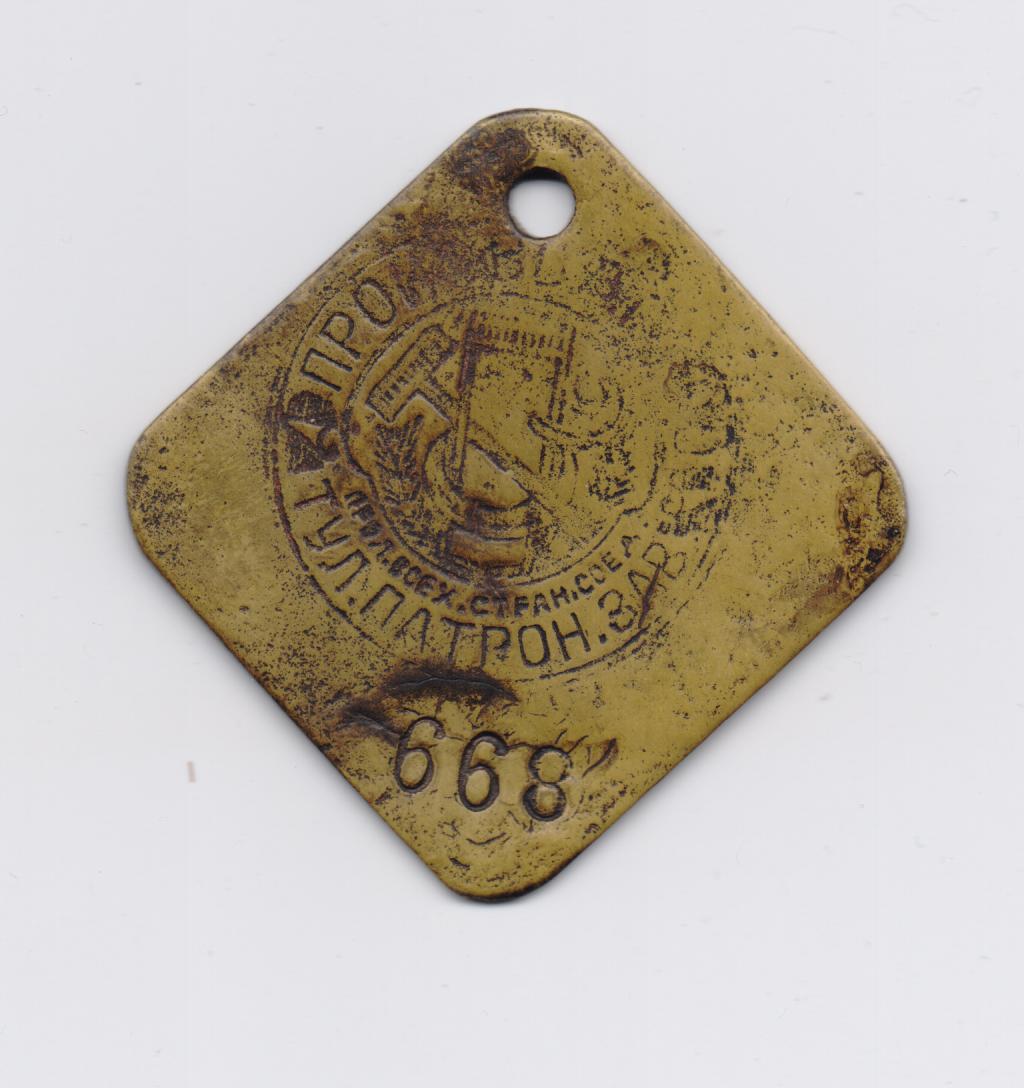 QUOTE(ЮнсЭП @ Mar 14 2012, 20:54) В продолжение темы табельных марок Тульского патронного завода. Скажу сразу, что советский период не моя эпоха коллекционирования, но поднятая тема захватила. Жаль, что нет информации по табельным маркам завода до 1917г. Эта марка явно относится к периоду с момента возобновления работы завода с 1918г. до начала 20-х. На это указывают и стилизованно заплетенные буквы "ТПЗ", в обрамлении колосьев, где Буква "Т" имеет сходство с молотом и буква "З", явно напоминающая о серпе, и лозунг ""ПРОЛ. ВСЕХ. СТРАН СОЕД". По надписи на марке "ПРОИЗВОДСТВО ТУЛ. ПАТРОН. ЗАВ." можно предположить, что на табельную марку набивалось обычное клеймо, которое использовалась для клеймения изделий завода. Например- самоваров. ![]() ЮнсЭП. Очень интересная тема.Табельные марки самоварных предприятий и мне интересны. Вложенные эскизы изображений |