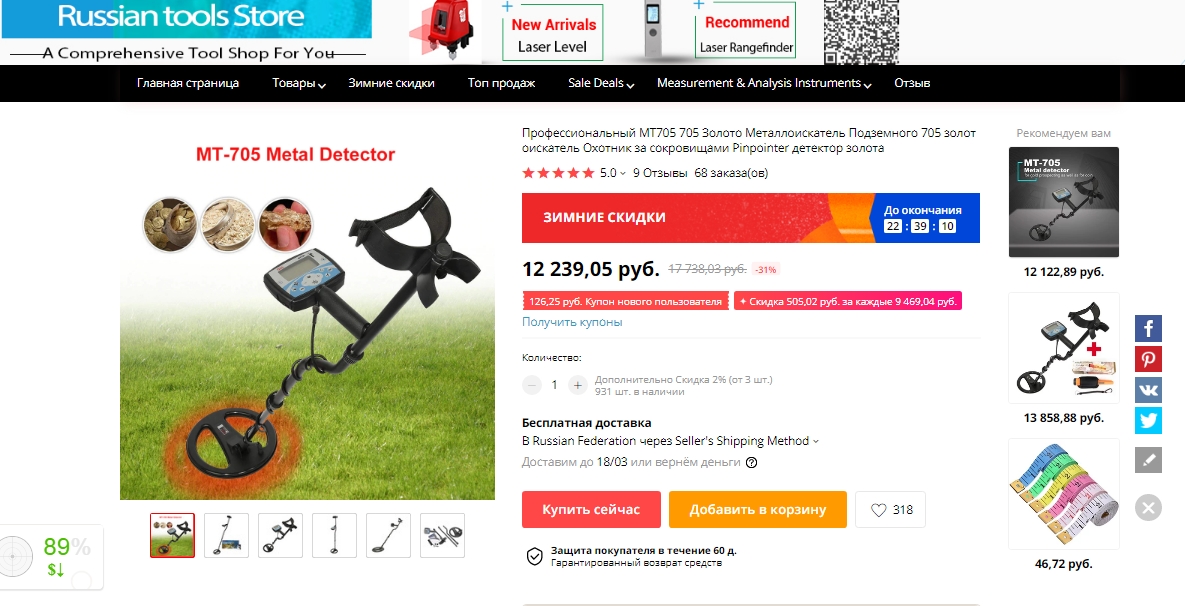 Был обладателем Сия прибора мт705 .Брал чисто как первый прибор .Так что платить не хотелось.Кста тэра новая летом стоила 560 евро кит 300.Разсудив что потом будет куплен более проф прибор.А кит так прикол, купил кита+ Кастюм +сапоги +лопату все по царски.Ходил с китом блин кайф.Золотое колечко,серебное,монетки.Крч был так даволен прибором что купил новый прибор за 750 евро.Для себя сделал вывод что у мд тоже есть шкала цена ,результат.И если сравнивать мт705 за 300 и ММК за750 еу.То в соотношении цена,результат кит выигрывает.С тех пор для себя решил что лучше взять б,у проф прибор за треть цены чем новый прибор среднего класса по полной цене.Потом так купил спектру за 300 евро.Прибор огонь !Крч к чему я это .У меня было 3 прибора мт705 ,спектра и макро мульти Крузер.И с точки зрения цена, результат кит занимает первое место .Одно золотое колечко ,одно серебряное,один серебряный крестик ,5 серебряных монет.И того 300 делим на 8 и того 37 евро за находку.Второе место спектра с ней меньше всех выходов 2 монеты серебро 300:2 =150 евро за находку.