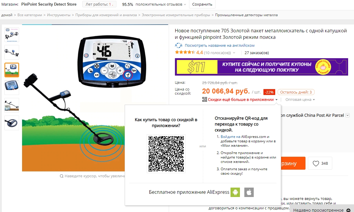 QUOTE(ALEKSEEVIChSIJI @ Dec 24 2018, 16:13) [url=https://ru.aliexpress.com/item/705/32954629502.html[/url] а стоит то всего на 6000 меньше чем настоящая QUOTE(VectorTula @ Dec 28 2018, 15:58) - 200, еще можно б было рискнуть, а отдать 350... QUOTE(Zloty @ Feb 12 2019, 21:20) Может Minelab цены снизит на приборы, было б не хило. Не сочтите за рекламу, но если кому-то интересно, то по ссылке в начале топика сейчас (скидка действует 3 дня), можно взять это чудо китайпрома всего за 20.067 руб., а в мобильном приложении вообще за 19.810 руб. Пруф: Однако если меня спросить, а взял бы сам, отвечу так: не взял бы, но не потому что не доверяю или опасаюсь прогадать по качеству, а только потому, что Тёрка ещё 70-я у меня до сих пор нормально работает, и к ней 4 катушки в наличии. А вот если бы продавали один блок (если блок реально минелабовский), без штанги и катушки, скажем за 10-ку, то купил бы. PS Кстати, этого же продавца лежат наушники, одна только фотка которых говорит сама за себя. НАУШНИКИ Сообщение отредактировано DevaD: Mar 5 2019, 16:09 -------------------- У меня есть любимый цветок С зубами как тысячи спиц И если бы не горшок Он мог бы ловить даже птиц