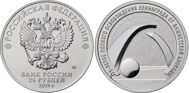 Продам 25рублей 2019г. 75 летие полного снятия блокады Ленинграда из мешка UNC
