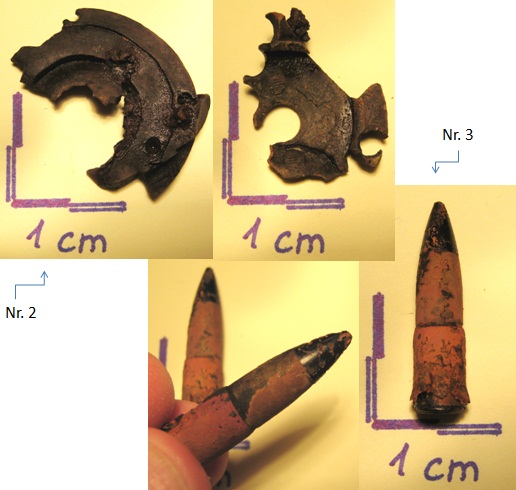 После первого выхода в лес, так сказать, по "войне" (юго-восточная Германия) возникли вопросы: номер 1 - имеет ли отношение к "эху войны"? К моему удивлению, леса в этом регионе оказались совершенно "девственные" - сигналов не встречается на протяжении десятков метров (режим, конечно, "Все металлы"). Поэтому, каждая находка кажется по-крайней мере - снарядом... И по номеру 2 и 3: двойка - вообще не понятно что, но может быть, для кого-нибудь это знакомый предмет. Номер 3 - Гаранд М1? (носик чёрный - окраска какого типа боеприпасов? Обойма скорее всего сгнила - но патроны в земле лежали попарно, по четыре в ряд). Спасибо за подсказки. Вложенные эскизы изображений |