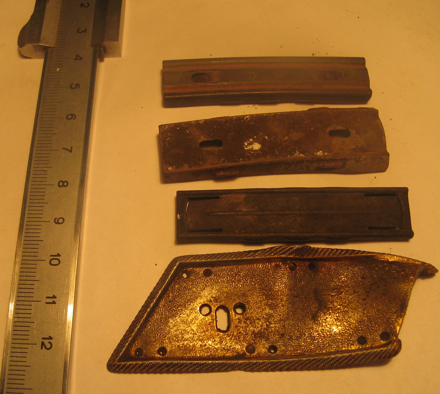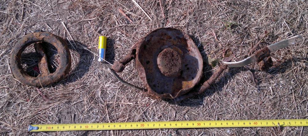 Попались летом такие штуки. Даж не знаю по войне ли это или просто хлам какой. Поскольку недалеко обнаружилось немного настрела, предполагаю что лучше в этот раздел разместить. Подскажите что за детальки