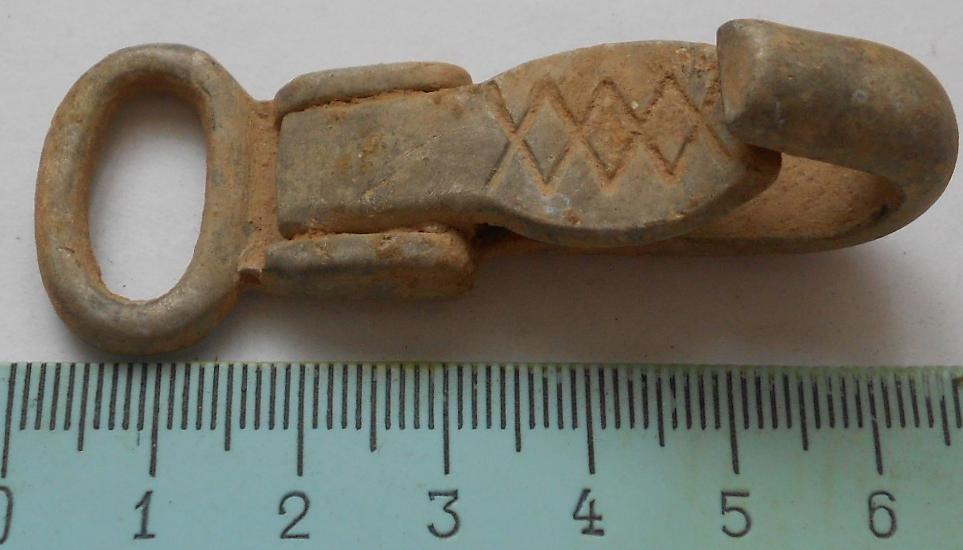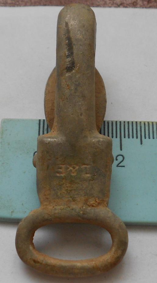 QUOTE(Graf_Kiselev @ Jul 2 2015, 00:13) Добрый вечер! Найден вот такой фрагмент. Размер 2,5 см в верхней части / 1 см в нижней. Пупырчатая фактура наводит на мысль о гансовском предмете. Просто интересно, от чего это? т.к. материальная ценность маловероятна. Шилдик от сельхоз техники или других агрегатов, довоенный. Попадаются в количестве по старым деревням. |