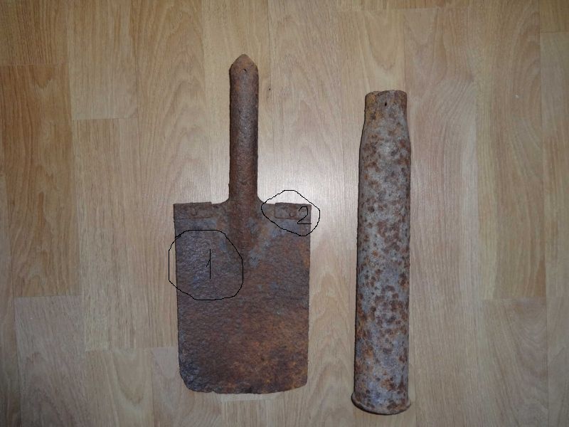 QUOTE(Solist @ Sep 5 2015, 12:19) Спасибо за советы. Подскажите, чем по чистить лопатку, чтобы было видно клеймо? Я бы посоветовал не добивать лопату грубыми чистками, кислотой и прочим. Клеймо имеет небольшую глубину. Чем больше снимите поверхностный слой, тем меньше шансов обнаружить клеймо. Почистите вручную не самой крупной наждачкой в области №1. Возможно какие обрывки клейма остались. Интересуют заплечики №2. На фото не очень их видно. Выглядят как заводские или народное творчество? Сообщение отредактировано SsAa: Sep 5 2015, 16:50 Вложенные эскизы изображений -------------------- Если у Вас есть для меня информация, прошу в личку.