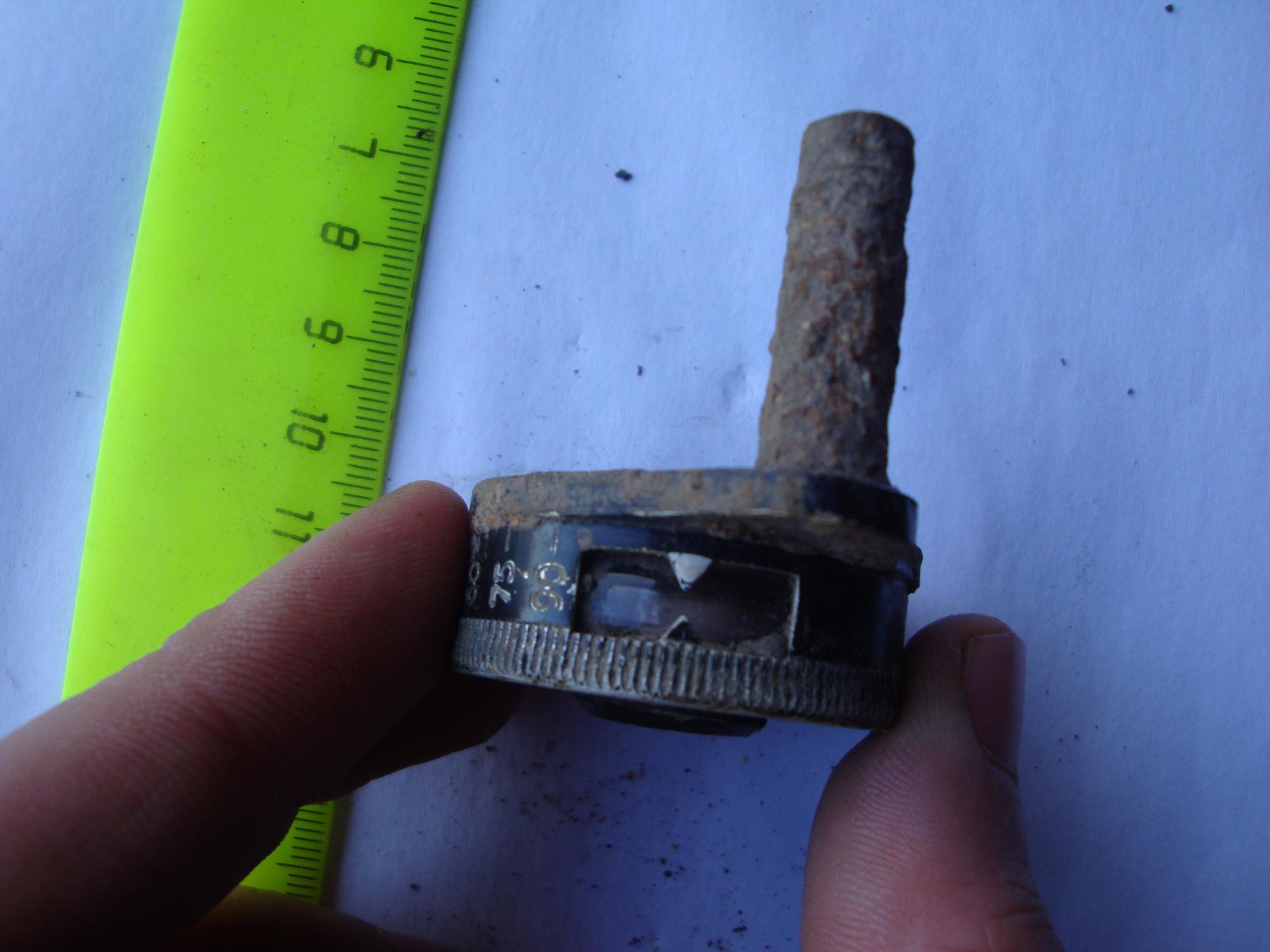 QUOTE(konon @ Nov 28 2011, 22:24) От чего не подскажите...? Диаметр 20 мм. длинна 59 мм. Предполагаю, что это металлокерамический сердечник от подкалиберного бронебойного снаряда. Смущают размеры и два пояска насечек. -------------------- Кладоискательство - моя любимая разновидность алкоголизма.