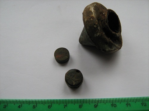 1 прибор для запрессовки капсюлей. [quote=Lixma,Oct 30 2015, 21:20] Устье от шашки, №2 - закрутка от офицерской драгунской шашки обр. 1909 г. [/quote] Спасибо за помощ! за первый предмет была версия что это оптический прицел Вопрос к Lixma - как думаете это устье может быть от тойже шашки от которой закрутка? -------------------- Чем дальше в лес тем больше интерес