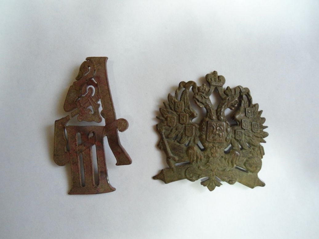 Добрый вечер, помогите пожалуйста определить находки, и их предполагаемую ценность, спасибо. [/quote Выставят эти предметы на фалеристику,там спецы ответят и народ увлечен по этой теме.Если не ошибаюсь вензель с погона или эполета, а орел на пушках,кокарда.С ув.] -------------------- Жизнь моя как ветер...
