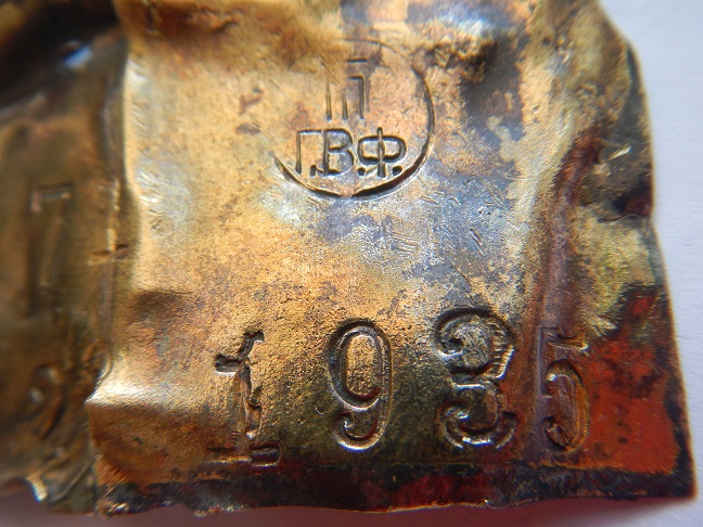 QUOTE(Вод @ Jul 26 2017, 23:34) Прошу подсказать, от чего это? Стоит ли нырять за остальными частями? размер 4*6 см. Думаю, это сделано от нечего делать и не является частью чего-то номерного, исторического и ценного. Просто на попавшемся под руку куске жести человек тренировался или просто дурачился. Клейм слишком много на такую площадь и они как то в случайном порядке расставлены. -------------------- Куплю Деус 2