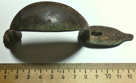 Здраствуйте, не знаю куда выложить предмет, попробую сюда. Вчера попалась вот такая вещичка, по моему киверная чешуйка. Помогите пожалуйста узнать о ней более конкретно. Недалеко попалась пуговица оловянная большая номер 25.