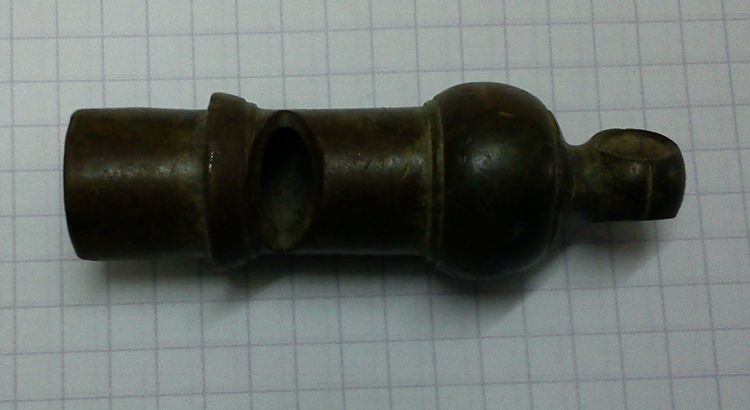 Доброе утро уважаемые. Вот попалась такая вещь, похоже сапёрная пряга, только смущает отсутствие на обратной стороне следов крепления. Подскажите пожалуйста, это пряга или нет. И ещё, можно ли её как нибудь выровнить? Недалеко от пряги выскочил свисток. Подскажите что за он. Всем заранее спасибо.