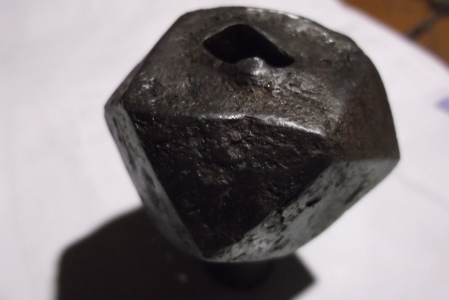 Здравствуйте. Нашел колчан стрел, под ним булаву. Вес 254 г. Поднимал научную литературу, но у тюркских племен на нашей территории на этот период их в составе боевого вооружения не было. Нашел упоминание в одной научной статье о находках кыргызских булав в Казахстане. Эта же по весу, форме и расковке напоминает славянские 9- 13 в.в. Но у тех отверстие было круглое. Здесь заход круглый, переходящий в квадрат, а к макушке сужается в прямоугольник. Внутри была деревяшка и остался приржавевший залипший гвоздь. Если у кого-то есть информация о подобных находках булав в Южной Сибири, то сообщите пожалуйста. Буду благодарен.