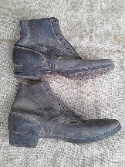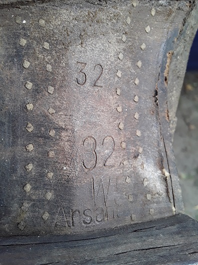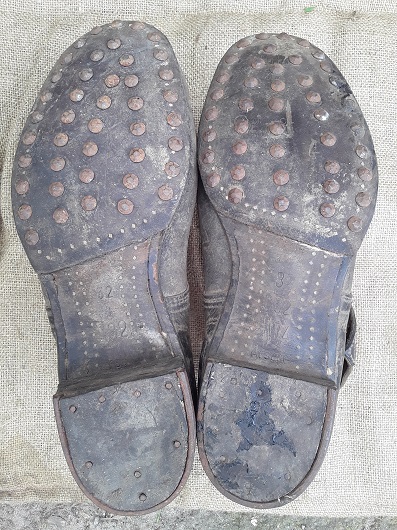 Здравствуйте. Чердачная находка, ботинки кожаные, примерно 46-го размера. На коже изнутри клеймо из букв и цифр, неразборчиво. Подмётки прибиты семигранными гвоздями, по 43 штуки на каждую. Также прибиты множество маленьких гвоздей с гвадратной шляпкой. На подошве на обоих ботинках клейма 32, W4 на левом W5 на правом, и, видимо, название фирмы "Arsand" или "Arsana". На подковах клейма на боку 23R и 23L. Прошу подсказать, какой армии эти ботинки и какого года эта модель.