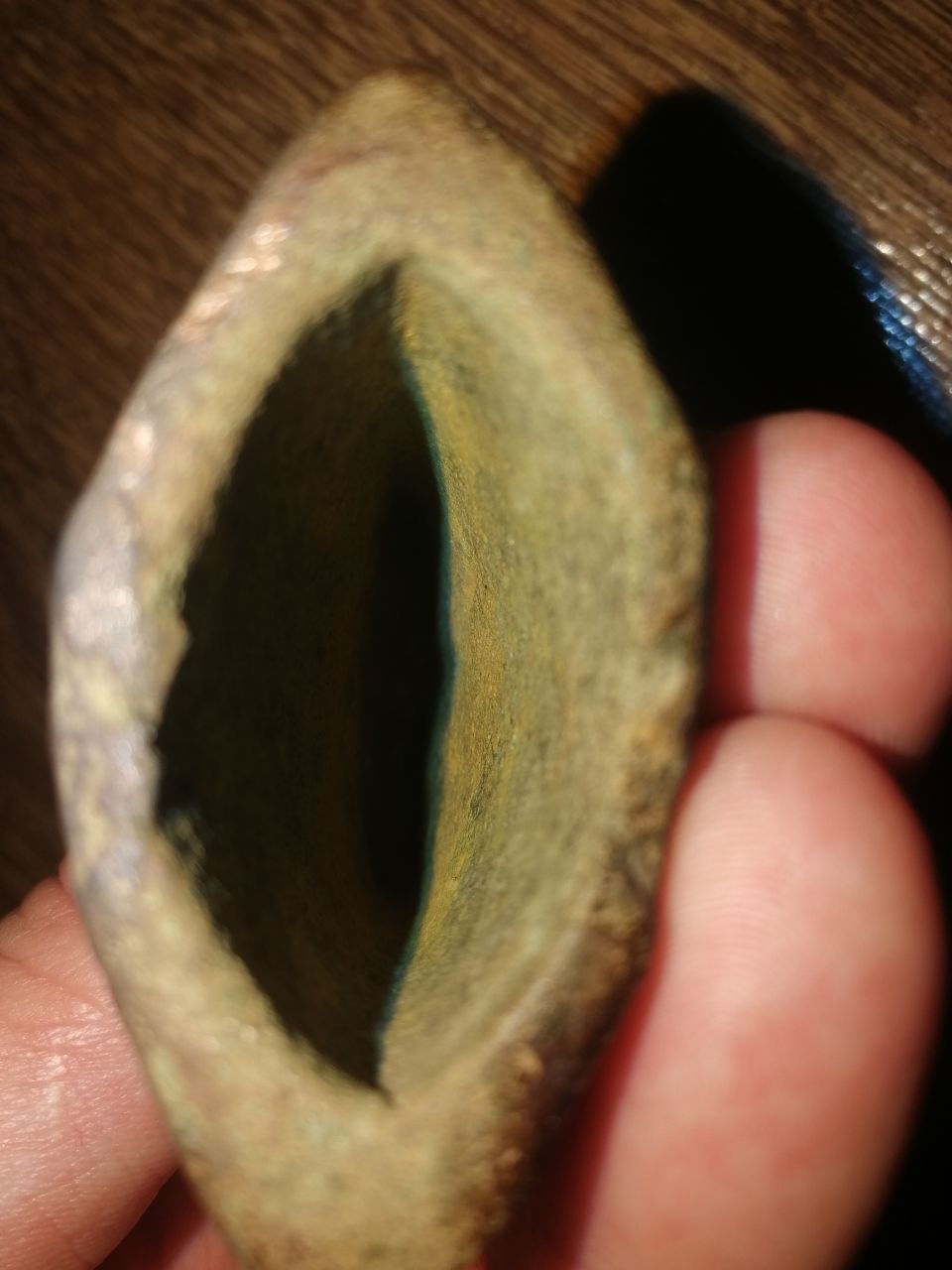 Думал шмурдяк какой-то,вся зелёная была,но после кипячение в соде,проступило и посеребрение и посинение...думал от чашки,но диаметр закругления как-то маленький...от чего может быть? Размеров нет, а так на обломок ложки похоже. |