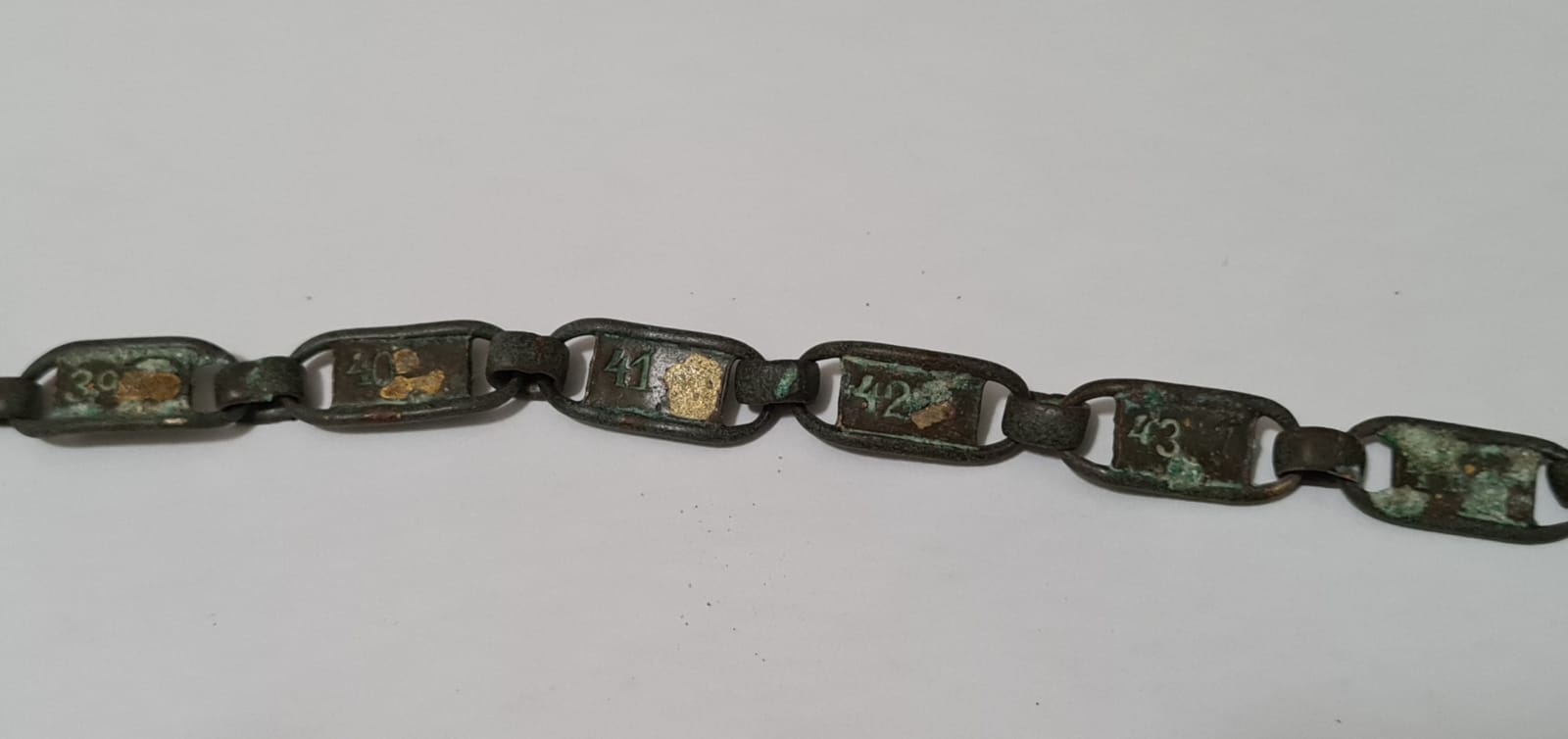 Нужна помощь в идентификации. Цепь(браслет) с числами на звеньях. Найдена в море , рядом с бывшей английской военной базой, с начала и до середины прошлого века, Израиль. Как варианты , солдатский браслет( цифры это года службы), гибкая линейка, напоминалка, счетчик при ориентировании..., матерьял какой то латунный сплав, может кто встречался с подобным?