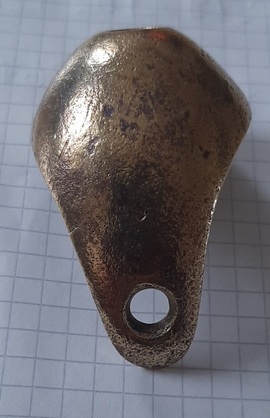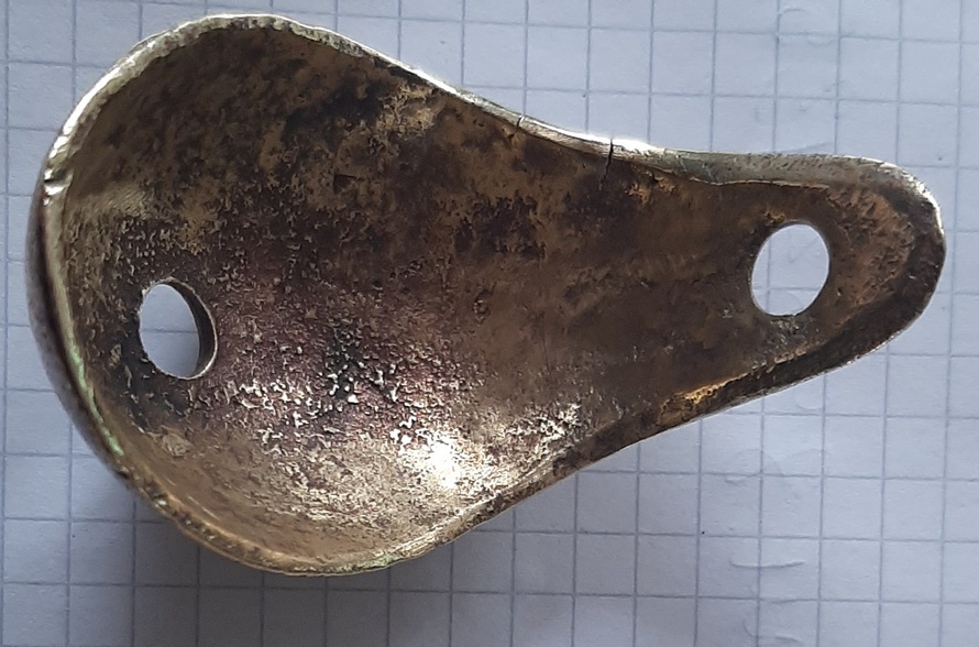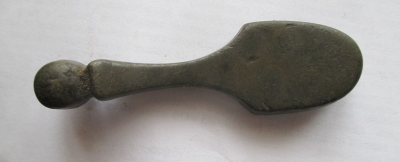 Здравствуйте.Прошу помощи в определении предмета.Размер ..длинна 7,5 см,ширина лопатки 2,5 см(на тыльной стороне лопатки есть шпенек-5 мм.).,Бобышка с отверстием- диам.1,2 см.(внутренний 0,8 см).