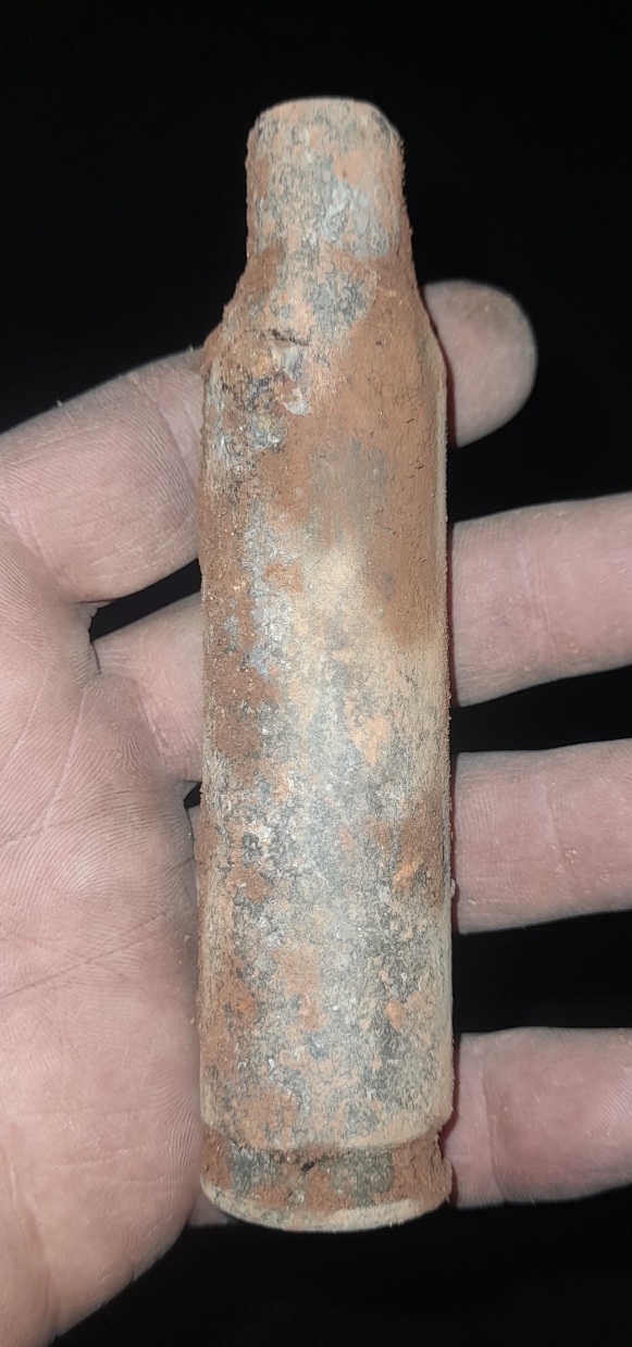Гильза покороче: 22х26,5х116 мм, гильза подлиннее 22х33х150 мм. У гильз капсюли надбиты. Цельнометаллическая пуля 22х74 мм, полая пустая пуля с округлым силуэтом 19,5х83 мм. ![]() ![]() Сообщение отредактировано e-selskiy: Apr 3 2025, 23:28 -------------------- Просвечиваю землю с 2007