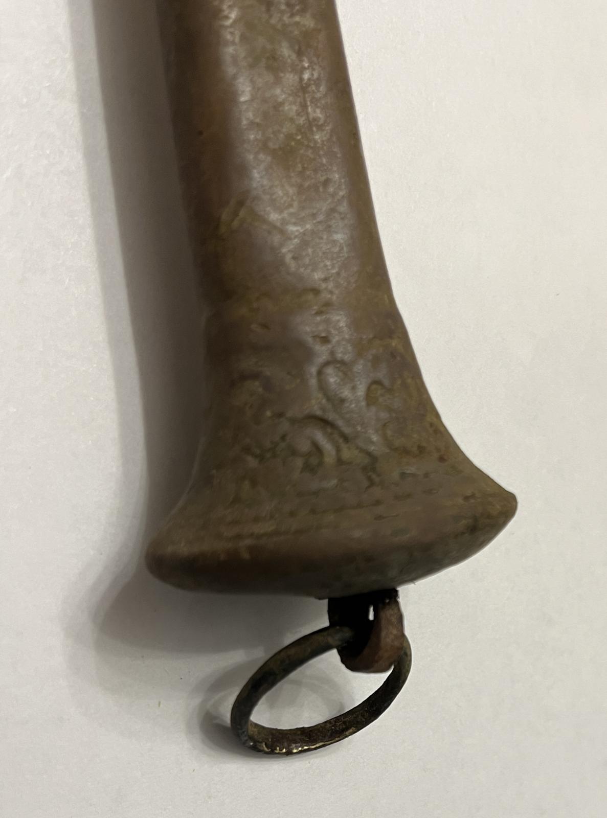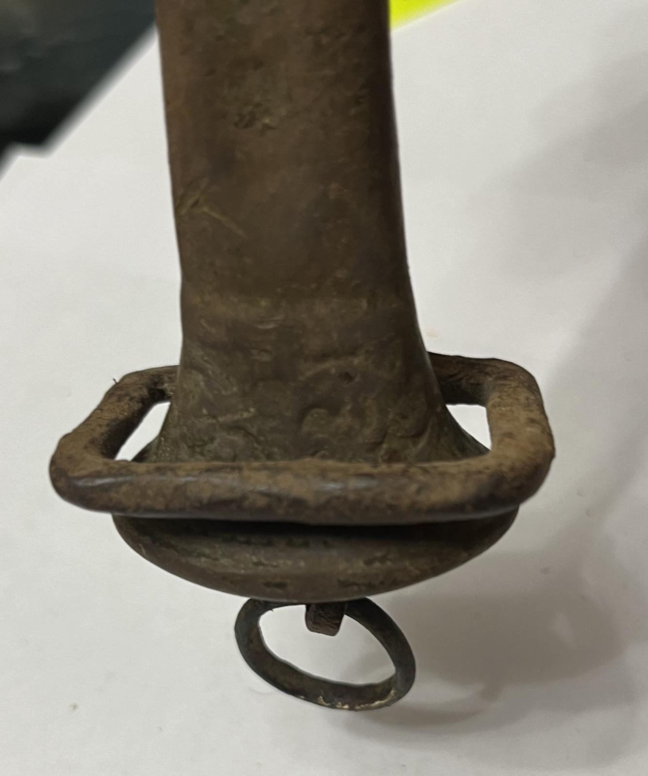 общая длина - 41,5 см такой длинный, длина одного лезвия 28,5 см, ширина лезвия у ручки 2,2 см, на нем была надета прямоугольная пряга (есть на фото), думаю все что осталось от ножен, на ручке и кольце есть рисунки и следы золочения, прошу подсказать по периоду ну и стоимости. спасибо. Вложенные эскизы изображений |
