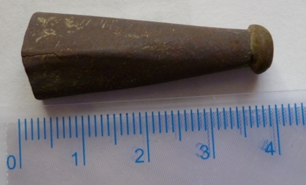 Странный девайс (длинный предмет) найден ещё в апреле на немецком опорнике и благополучно вылёживался в гараже в куче с всевозможным копаным хламцом. Недавно попался на глаза, был отмыт и тут же опознан. Предлагаю любителям подобных головоломок определить предназначение предмета. Предмет поменьше – подсказка. Извините, что как последний лузер забыл приложить линейку. Длинна предмета с задвинутой шкалой -33 см.